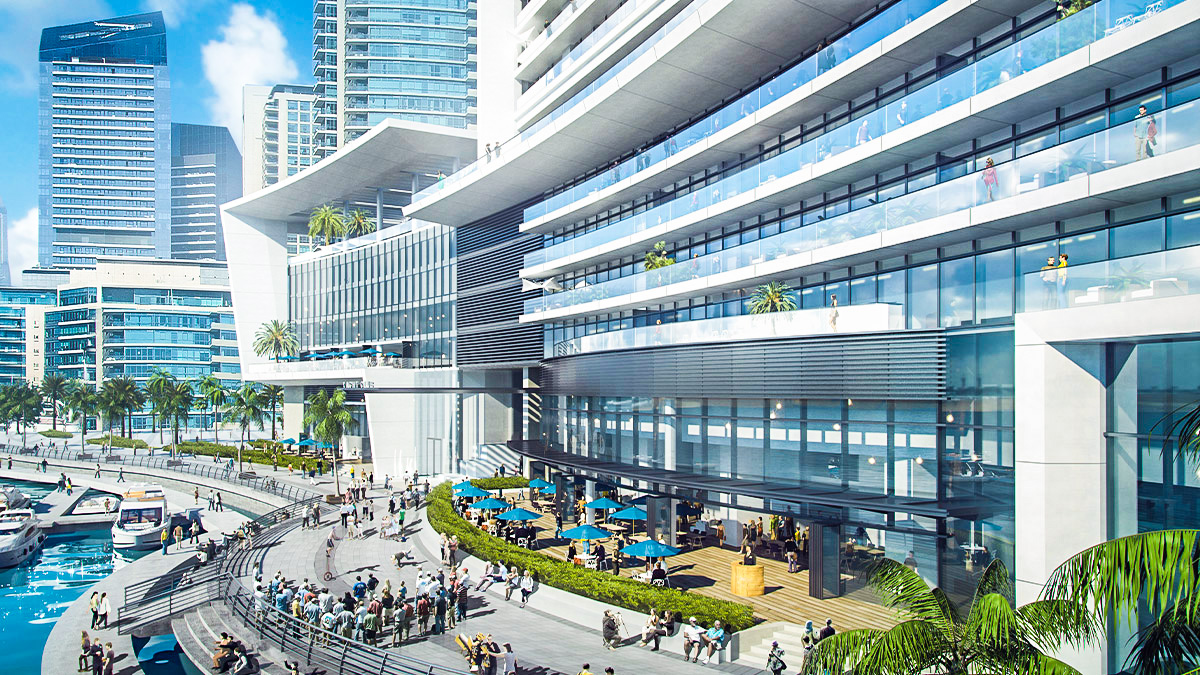 Spectacular views of the marina, city skyline, and Arabian Gulf from select residences