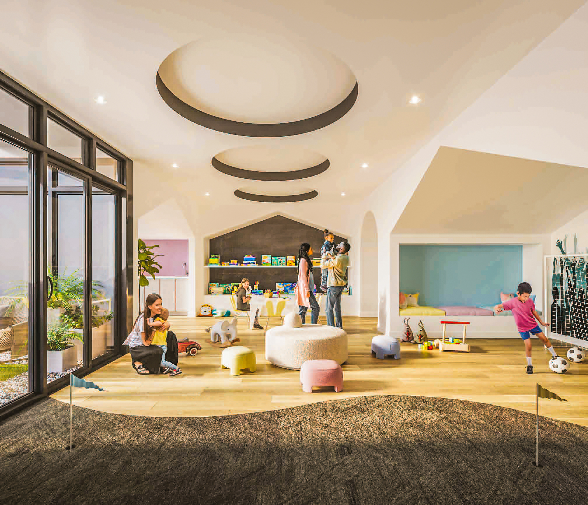Indoor and outdoor children’s play areas, fostering a family-friendly environment.