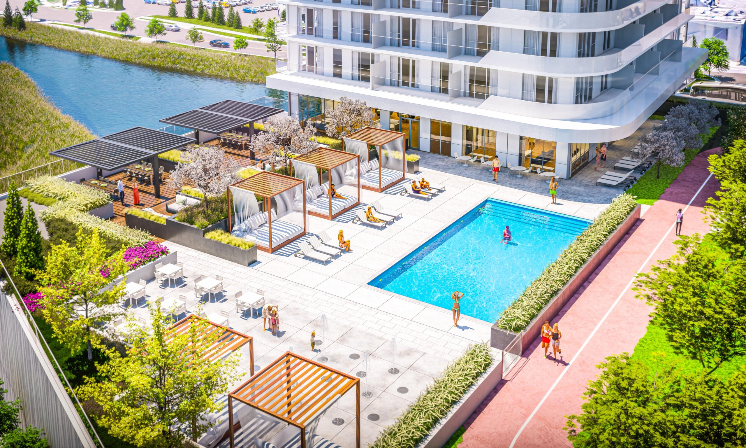 The Thompson Club, an exclusive amenity space within Thompson Towers, serves as the development’s second unique selling proposition. This state-of-the-art facility encompasses both indoor and outdoor amenities, including a pool, walking track, gardens, sports courts, a dog run, children’s play area, and much more. The Club is designed to foster a vibrant and engaged community lifestyle, providing a luxurious backdrop for relaxation, fitness, socializing, and family activities, all within the convenience of home.